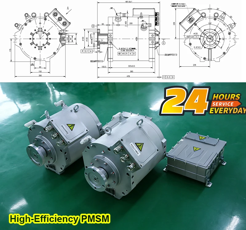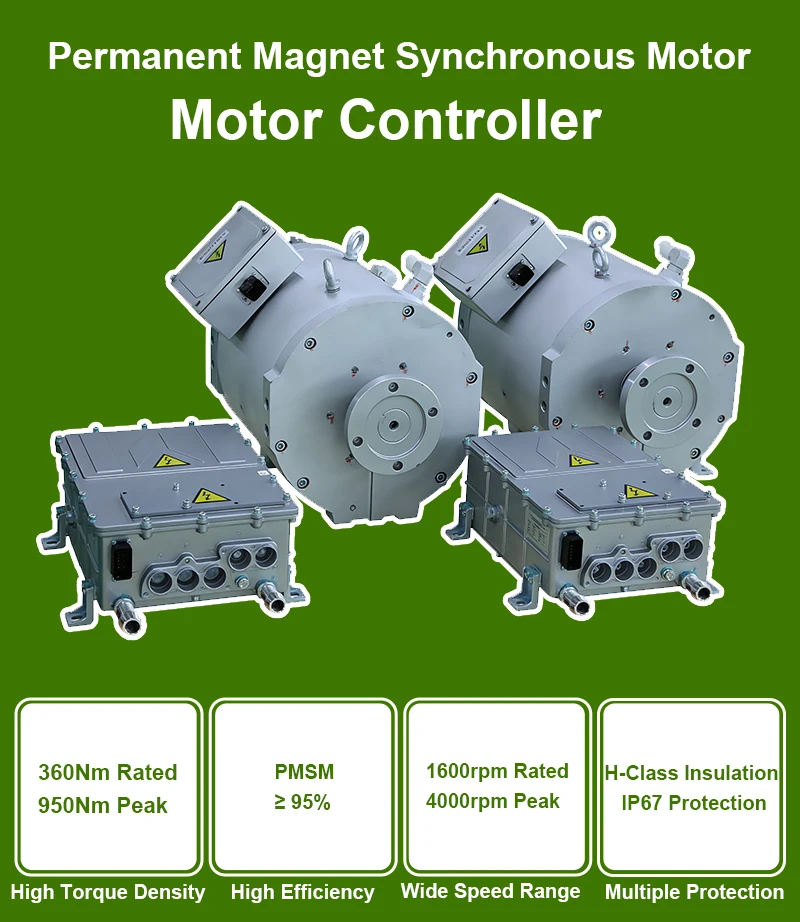 Onze 60kW Synchrone motor met permanente magneet (PMSM) gecombineerd met een 75KW hoog efficiënt motorcontroller levert een uitstekende vermogensdichtheid, precisiebesturing en hoge betrouwbaarheid.
